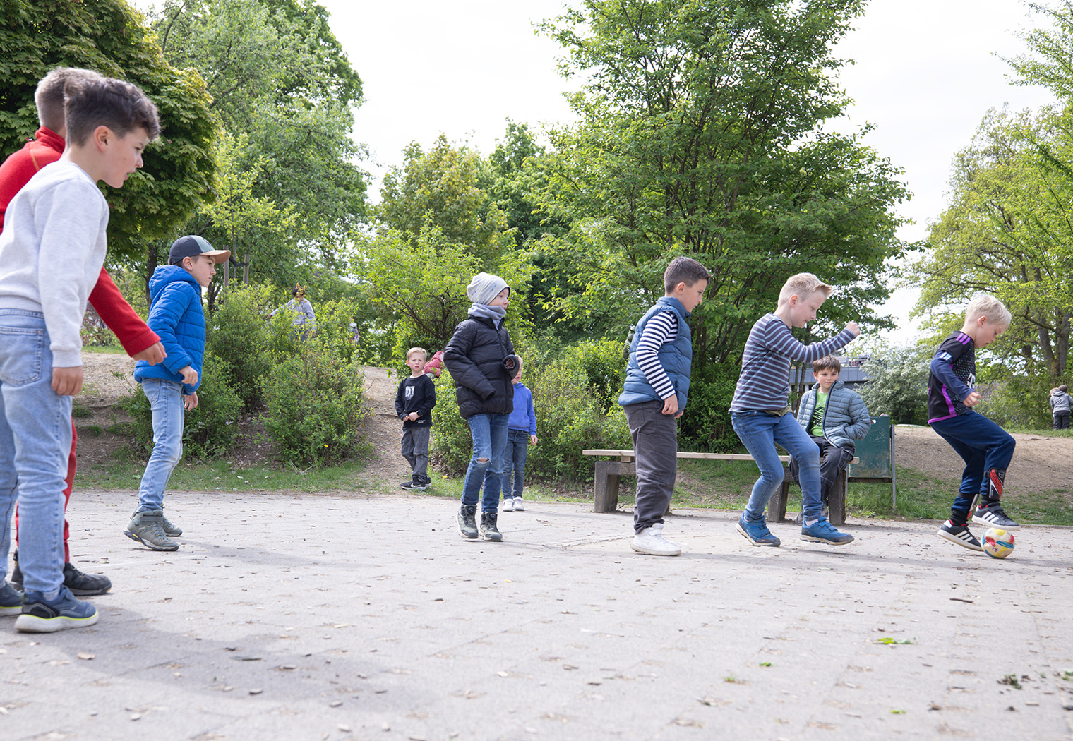 Freispiel drinnen und draußen: Ob in der Turnhalle, auf dem Schulhof oder in kreativen Spielräumen – die Kinder haben Zeit für Bewegung, Spiel und Entspannung.