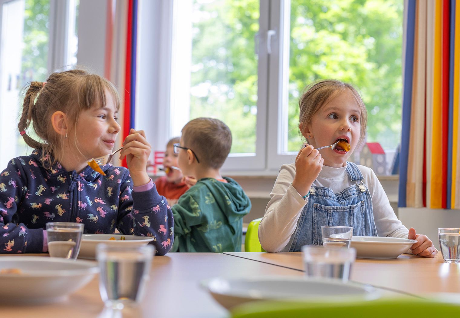 Gemeinsames Mittagessen: Ein frisch gekochtes, ausgewogenes Mittagessen wird täglich vom Mensa-Verein bereitgestellt.